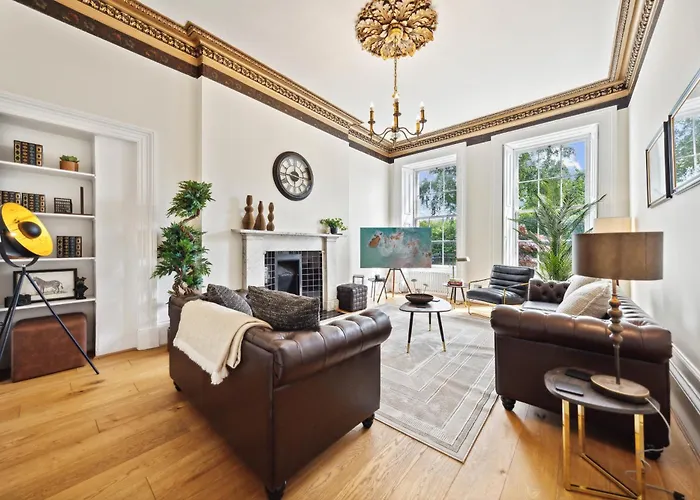 Apartmán Timeless 5 Bed Duplex Flat nabízí kompletní kuchyni i pokoje s šatnou, přístrojem na přípravu kávy a čaje, TV s plochou obrazovkou se satelitními kanály. Fontána Doulton je ve vzdálenosti 3 km, zatímco Auditorium Clyde je 1 km daleko.