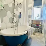 Glasgow Center/West End Apartment ferielejlighed består af 1 soveværelser. Et badeværelse består af separat toilet, et badekar og en bruser.