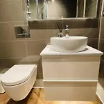 Lovely 1-bedroom Apt in Glasgow City near Subway is equipped with a bathroom that features hairdryers and bath sheets. A shower can also be found.
