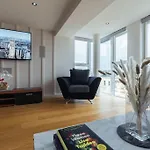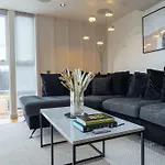 グラスゴ-のノ-ス・ウエスト地区にあるThe Penthouse Suite - Luxury Like No Otherアパ-トはグラスゴ-国際空港から20キロメ-トル離れています. 自炊用の器具でいっぱいの台所は電子レンジ と冷蔵庫を設けています.