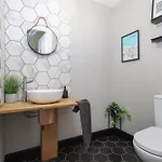 Naast een open haard heeft de 3-slaapkamer Extravagant 6 Bed Victorian Townhouse With Hot Tub Villa ook een flatscreen TV met satellietzenders. Badkamervoorzieningen omvatten zowel een apart toilet, een badkuip en een douche, evenals een haardroger en handdoeken.