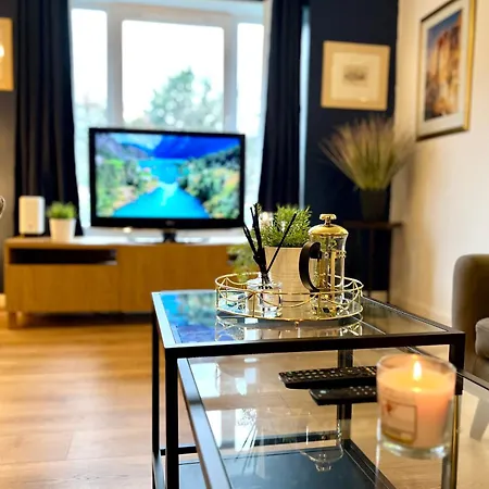 Ground Floor Flat With Free Parking & Wifi公寓俯瞰着花园,离惠灵顿·格拉斯哥公爵骑马雕像开车约需10分钟. 客房有休息区,卫星频道平板电视 和电视以及配冰箱,烤箱 和厨具的大厨房.